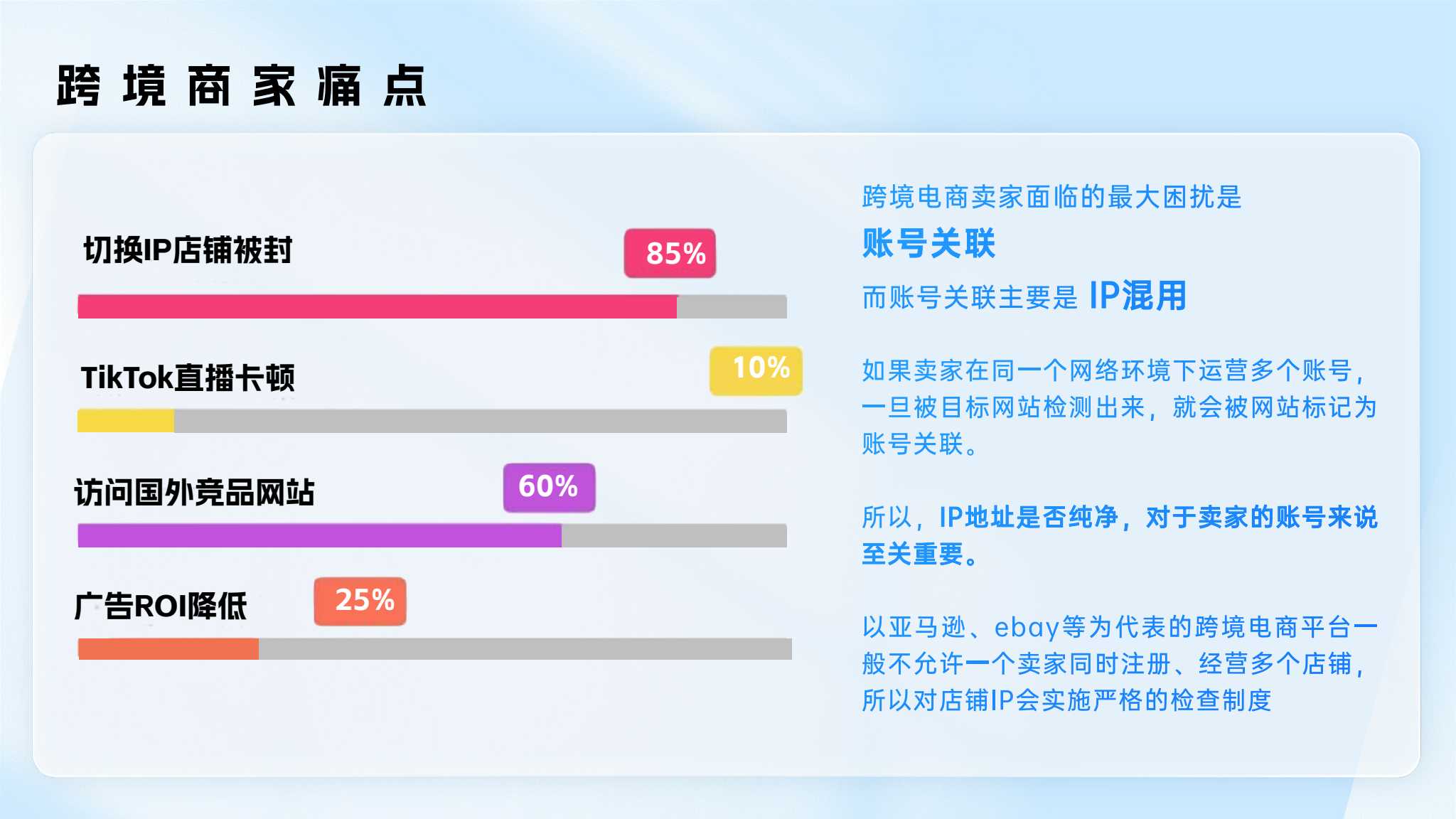 共享IP、非直播地區(qū)本地IP、IP被標(biāo)識(shí)欺詐或之前被大量用戶(hù)使用,導(dǎo)致帳號(hào)權(quán)重低,作品沒(méi)有播放量。連帶關(guān)聯(lián)賬號(hào)及店鋪被封控